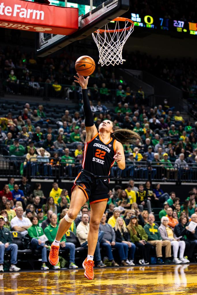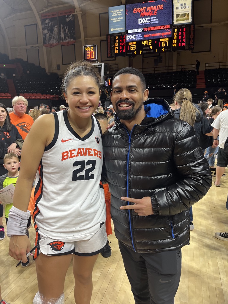 On February 4, 2024, I attended the Women’s Basketball game versus the Beavers at Matthew Knight. I sat just above Pit Crew when I noticed a name I recognized from my childhood, on the back of a Beaver jersey. I am telling you, she was cold game like the flu. She picked a few pockets, and had the most assists against us for her team that day. Maybe not the most points, but it kind of felt like watching a female version of Rajon Rondo out there.